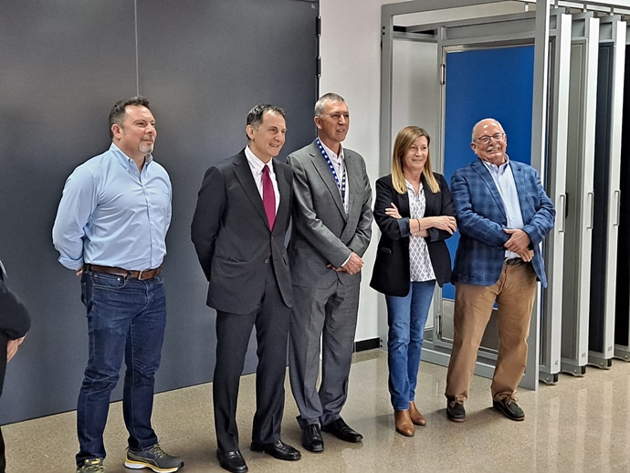José Vicente Andreu, consejero delegado de Puertas Andreu Barberá y vicepresidente de APA, junto al equipo directivo de la empresa, recibieron a Rafael Climent a la entrada de las instalaciones industriales. A continuación se realizaron las presentaciones y saludos a Cristina Martínez, directora Territorial de Economía del Ministerio de industria, Comercio y Turismo, y directora del ICEX Valencia, y a los representantes de las organizaciones y federaciones colaboradoras de APA: