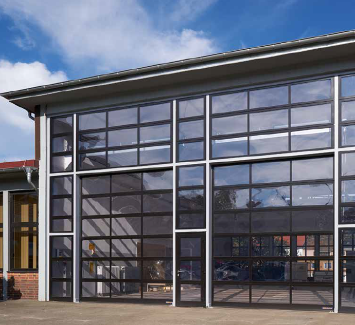 Las puertas, con acristalamiento de material sintético DURATEC, resisten incluso en caso de un uso duradero en ambientes industriales. Una imprimación especial de la superficie protege el acristalamiento contra arañazos y huellas de forma duradera. Esta tecnología la viene aplicando Hörmann con éxito desde hace más de 20 años.