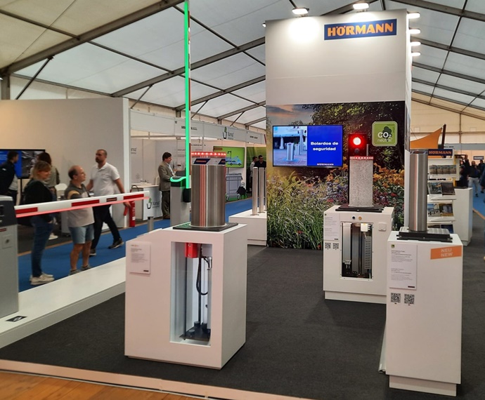 Durante la feria, Hörmann ocupó el stand 172 del pabellón 1, el espacio más grande de la feria, donde presentó su amplia gama en control de acceso. Todo tipo de pilonas (eléctricas, hidráulicas, fijas, extraíbles, etc.), barreras de elevación, torretas eléctricas y el Oktablock, pilona de máxima seguridad que cuenta con certificaciones internacionales, se mostraron al público asistente.