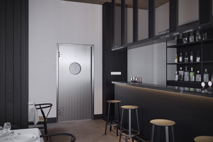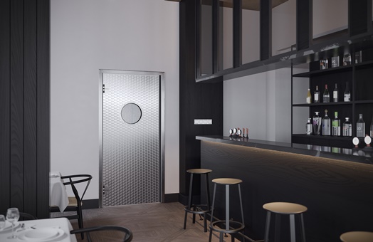 Por otro lado, las puertas de acero inoxidable, con un núcleo de espuma de 40 mm, se destacan por su elegancia y son ideales para proyectos con altos estándares arquitectónicos. Disponibles en dos atractivos diseños (pulido y mateado en círculos), estas puertas ofrecen una solución estética y funcional.