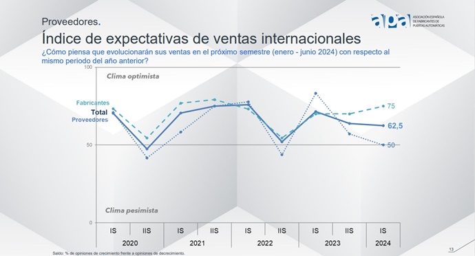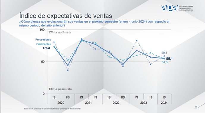 En cuanto al primer semestre de 2024, el clima de ventas para las empresas fabricantes es moderadamente optimista; siendo algo mejor para las ventas internacionales.