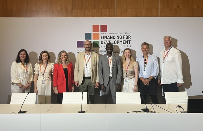 Javier García, vicepresidente de la Organización Internacional de Normalización (ISO) y director general de la Asociación Española de Normalización, UNE, presentó la Alianza ImpactWorks en el marco de la Cuarta Conferencia Internacional sobre Financiación para el Desarrollo (FfD4) celebrada en Sevilla, junto con Marcos Neto, subsecretario General de la ONU y director de la Oficina de Políticas y Apoyo a Programas del PNUD.