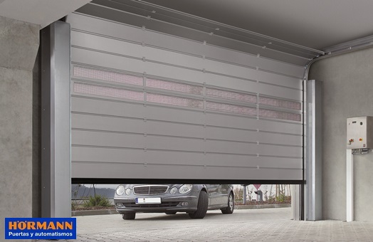 Hörmann presenta la nueva puerta seccional Speed HS 5015 PU N para garajes comunitarios.