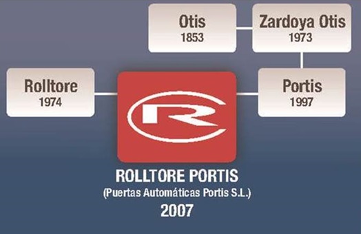 Rolltore Portis surge de la ilusión por crear un gran grupo dentro del sector de puertas automáticas que pudiera ofrecer las mejores soluciones y servicios a sus clientes. Con este propósito en el año 2007 se produce la fusión de estas dos importantes empresas del sector. Por una parte Rolltore, líder en la instalación de puertas automáticas en España con más de 39 años de experiencia y por otra Portis, empresa fundada en sus orígenes por la firma Zardoya Otis, y líder en servicio y especializada en el mantenimiento de puertas automáticas.