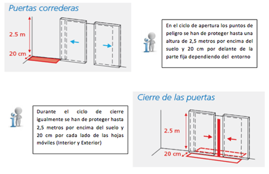 La norma UNE-EN 16005 marca los requisitos de seguridad que tienen que cumplir tantos las máquinas en su fabricación, como la puerta en su instalación. Los puntos más significativos de la norma son los siguientes:
