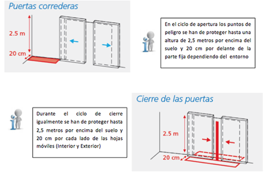 -Distancia de detección del usuario por parte de los sensores de la puerta de 1 metro en puertas normales y 1,5 metros en las situadas en ruta de evacuación.