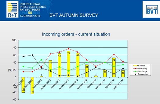 El actual crecimiento del volumen de ventas está basado en el aumento del 5,6% de las ventas nacionales y especialmente en el crecimiento del 11,8% experimentado en las exportaciones. Después de un buen comienzo del año, los nuevos pedidos han caído durante el comienzo del segundo trimestre. No obstante, en julio y agosto se ha podido observar una tendencia positiva. a pesar de que el segundo trimestre ha sido algo más débil, en sector mira con optimismo hacia el desarrollo de los próximos meses y espera un ligero aumento del volumen de ventas para el 2014 con respecto al año anterior.