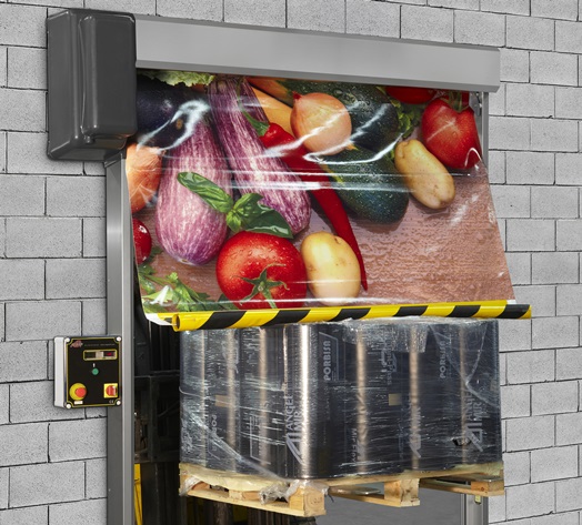 Es una puerta enrollable para huecos de tamaño medio, ideal para la separación de diferentes ambientes y pasos entre naves, almacenes, tiendas o cámaras de temperatura positiva. Es autoencarrilable: si la hoja recibe un impacto fuerte sale de las guías y se encarrila automáticamente en la maniobra siguiente. Se puede personalizar seragrafiando la lona con una imagen más vistosa e impactante, convirtiéndose en un anuncio publicitario o ayudando a los clientes a identificar un área específica de un espacio o proceso productivo.