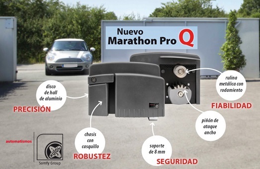 Entre los productos destacados que han podido conocer los asistentes a la feria de R+T Stuttgart 2015 podemos citar el motor para puertas correderas residenciales Marathon Pro Q. Incorpora un sinfín de mejoras técnicas en el chasis, el soporte, el piñón de ataque, etc., que refuerzan su robustez, fiabilidad, adaptabilidad, seguridad y precisión. Adaptable a puertas de hasta 2.000 kg de peso, el motor cumple toda la normativa europea de seguridad y es una de las soluciones de mayor calidad del mercado.