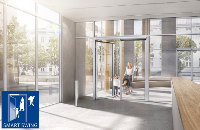 El sistema Powerturn facilita el acceso a niños y personas con discapacidad móvil. Si vamos cargados con bolsas de la compra o con un niño en brazos, aportando confort y seguridad. El nuevo mecanismo de GEZE totalmente automatizado, abre puertas grandes y pesadas de hasta 600 kg, de una o dos hojas, de manera fácil y segura para abrir manualmente, sin el más mínimo esfuerzo por cualquier persona y en cualquier momento gracias a la función única Smart Swing.