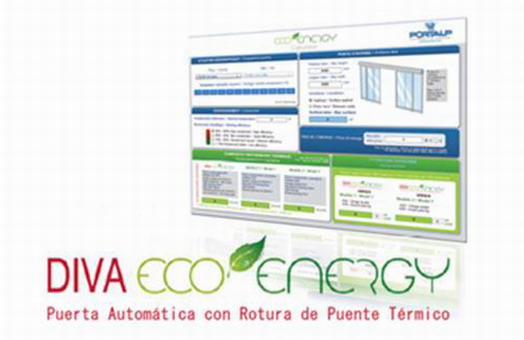 Portalp, junto a la primera y única puerta automática con Rotura de Puente Térmico del mercado, DIVA ECOENERGY, ofrece, a través de una sencilla herramienta informática, la posibilidad de conocer y comparar cifras sobre el ahorro energético que significa la instalación de una puerta DIVA ECOENERGY, comparada con otros tipos de puertas correderas de cristales convencionales.