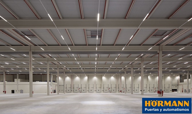 El complejo, inaugurado este año, está formado por dos edificios y cuenta con una superficie de 84.983 m2. Con el objetivo de conseguir un mayor ahorro energético, la nueva plataforma logística ha instalado las puertas seccionales y las rampas niveladoras Hörmann en sus 63 puntos de carga y 9 puertas seccionales en los accesos al interior de las naves siguiendo las más altas especificaciones técnicas de calidad.