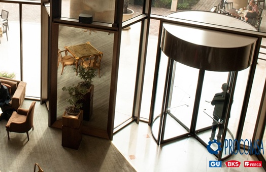 • Modelo GGR: modelo para puertas de gran diámetro y capacidad. Con posibilidad de incluir incluso escaparates en las propias hojas de giro, suelen ser la solución en estaciones, aeropuertos, …etc.