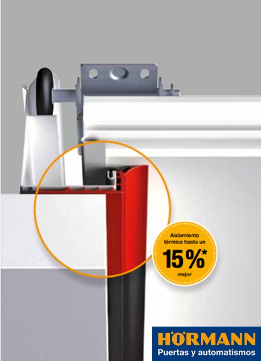 Las puertas seccionales de garaje Hörmann cuentan opcionalmente con ThermoFrame, un sistema que mejora el aislamiento térmico hasta un 15%*. De esta manera, se favorece el mantenimiento de una temperatura óptima dentro del hogar y se reducen considerablemente las pérdidas de energía que se producen a través de las puertas. Además, las juntas labiales adicionales a ambos lados y en la parte superior de la puerta reducen la pérdida de calor del interior del garaje.