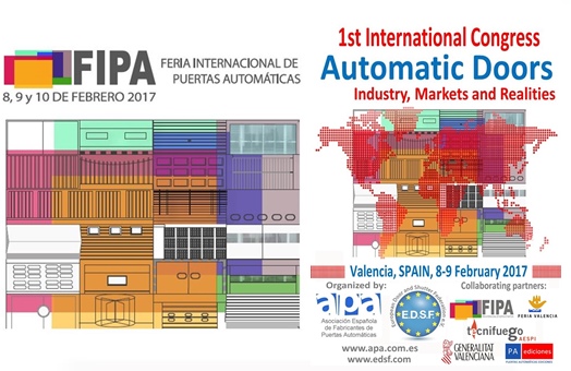 FIPA potencia su escaparate expositivo con la celebración del Primer Congreso Internacional de Puertas Automáticas organizado por APA, Asociación Española de Fabricantes de Puertas Automáticas, y E.D.S.F., European Door and Shutter Federation. Una Jornada técnica que tendrá lugar durante el segundo día de FIPA, jueves 9, en la que se plantearán temas de máxima actualidad para el sector y todos los colectivos vinculados como cualificación profesional; normativa; sello y registro apa de empresas instaladoras y mantenedoras de puertas automáticas: comerciales, residenciales, industriales y cortafuegos, entre otros.