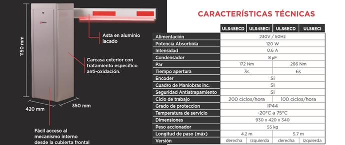 La barrera ULTRA de Erreka incluye electrónica de detección de obstáculos por encoder. La barrera ULTRA de Erreka cuenta con tecnologías que garantizan no sólo seguridad, sino también grandes prestaciones en su uso.