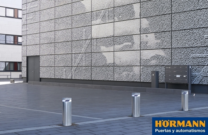 En el caso de los bolardos, se diferencia entre bolardos automáticos, semiautomáticos, fijos y extraíbles. Así pues, dentro de las instalaciones de una empresa se puede asegurar el perímetro del edificio mediante bolardos fijos, mientras que, los accesos se pueden equipar con bolardos automáticos que se pueden subir y bajar de forma hidráulica o electromecánica. Una de las principales ventajas de Hörmann es que todos los bolardos tienen el mismo aspecto entre sí.