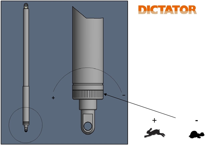 El cierrapuertas DICTATOR DIREKT actúa directamente sobre la hoja de la puerta, sin brazo o guía de deslizamiento. Un extremo se fija en el marco o montante de la puerta, el otro extremo en la hoja de la puerta.