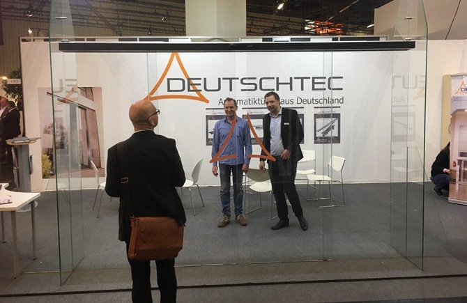 En la pasada exhibición de sistemas para puertas automáticas FensterBAU Frontale en Núremberg, Alemania; Deutschtec presentó, a los profesionales del sector, el novedoso modelo Airdrive NG 68, el cual encantó a todos, por su delgado perfil de tan sólo 68 mm. Ver vídeo a pie de la noticia.