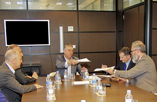 La firma ha tenido lugar en Feria Valencia, contando con la presencia y soporte de Rafael Climent, Consejero de Economía Sostenible, Sectores Productivos, Economía y Trabajo de la Generalitat Valenciana; y de Enrique Soto, Director General de Feria Valencia.