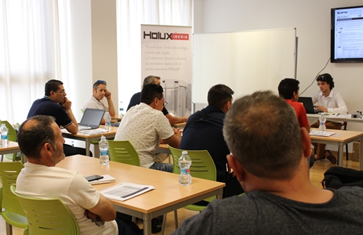 Durante el curso de formación se instruyo a los asistentes sobre la parte técnica de la serie HOLUX, y como novedad, se presentó la serie AirDrive 68. Un operador de máxima innovación en la industria de las puertas automáticas, que con 68 mm de altura lo convierte en el operador más delgado del mercado. Un poderoso motor de 100W que carga fácilmente hasta 120 kg por cada hoja.