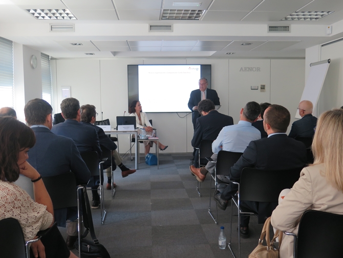 El 13 de junio se ha celebrado la asamblea general anual de TECNIFUEGO, en la sede de AENOR. Durante la jornada, además de rendir cuentas de la actividad y resultados de la asociación en 2018 y presentar los nuevos proyectos y estrategias para 2019, se ha contado con la presencia de José Carlos Pérez, Jefe del Departamento de Seguridad, Accesibilidad y Proyectos Prestacionales del Área de Gobierno de Desarrollo Urbano Sostenible del Ayuntamiento de Madrid, que ha impartido una interesante ponencia sobre las soluciones para la evacuación de personas con discapacidad en caso de incendio en los edificios emblemáticos y singulares ; y, desde UNE, se ha entregado una placa de reconocimiento a la labor de TECNIFUEGO, socio fundador de UNE en materia de normalización del sector de seguridad contra incendios en España.