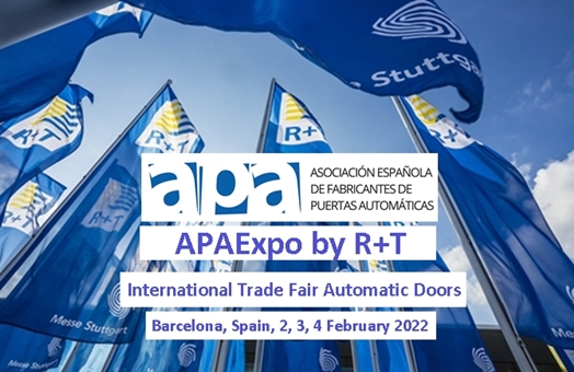 Messe Stuttgart y la Asociación Española de Fabricantes de Puertas Automáticas (APA) celebrarán por primera vez la «APAExpo by R+T» en Barcelona del 2 al 4 de febrero de 2022. Hasta ahora, esta feria internacional especializada para puertas automáticas tenía lugar bajo el nombre FIPA. La última vez, en Valencia, reunió a más de 100 expositores y 3500 visitantes especializados. En 2017 y 2019, la FIPA se celebró con el apoyo de APA. En colaboración con el equipo de la R+T —feria líder mundial especializada en persianas, puertas, portones y protección solar—, la feria especializada en puertas automáticas APAExpo by R+T se celebrará cada tres años, trasladándose a Barcelona.