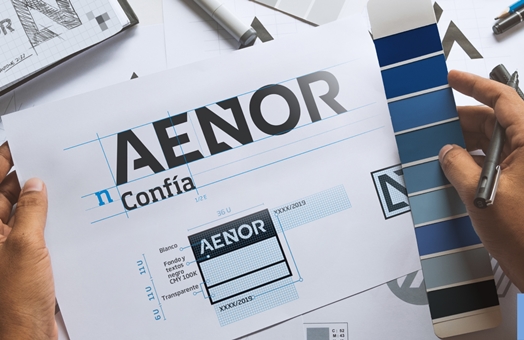 • En el ámbito gráfico, destaca una identidad verbal más actual y rotunda pero que mantiene los rasgos más identificables de AENOR.