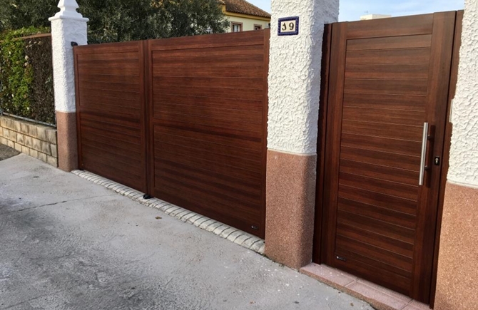 VALLADOS DE ALUMINIO: Las vallas delimitan tu casa de la calle o de un vecino, por eso las vallas de aluminio son una gran solución en diseño y seguridad. Las vallas de aluminio no necesitan ningún tipo de mantenimiento. Nuestra lama ventilada es elegante y discreta, permite el paso del aire, es sólida y ofrece un diseño limpio y moderno en cualquier tipo de fachada. Nuestras Vallas se acoplan a cualquier diseño o tipo de fachada. En Portalum trabajamos para ofrecerte la seguridad y el diseño de una gran puerta, nuestras puertas correderas y abatibles están diseñadas para ofrecer una máxima seguridad y un gran diseño en tu fachada. Elige entre una amplia gama de acabados y tipos de lama que se ajustan perfectamente a cualquier entorno, diseño y tipo de construcción.