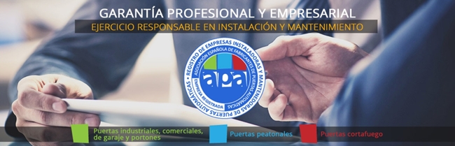 El sello distintivo o sello APA de "Empresa Registrada" como instaladora y mantenedora de puertas automáticas industriales, comerciales, de garaje y portones, peatonales y cortafuego, requiere por parte de la empresa acreditar que cumple los requisitos legales y profesionales exigibles para ofrecer un servicio cualificado con la máxima garantía, incluyendo técnicos acréditados.