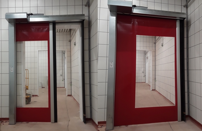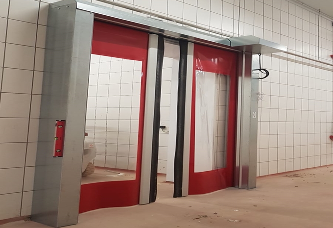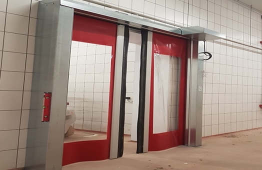 La industria alimentaria cada vez es más exigente con las directivas de higiene. A diferencia de la convencional, este modelo apenas toca el suelo, por lo que la parte de bajo no se ensucia y se evita así la posible entrada de suciedad o bacterias en el interior. Cuando las puertas rápidas se cierran de manera vertical están en contacto con el suelo y recogen toda esa suciedad y contaminación. En la industria cárnica, por ejemplo, se limpia el suelo con productos químicos, y cuando abres la puerta rápida vertical estos siguen goteando y pueden caer encima de los alimentos.