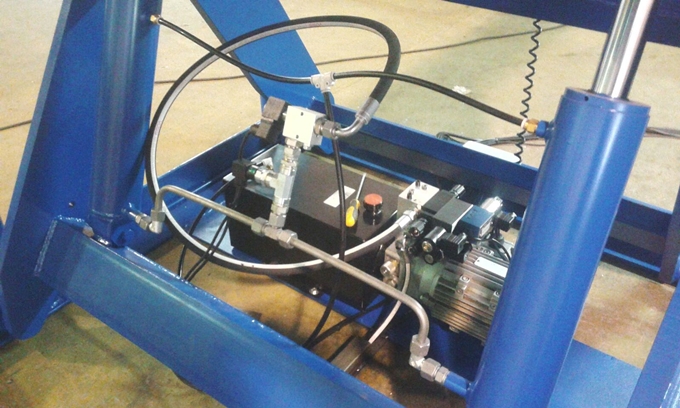 • Válvula anticaída. Se trata de una válvula de retención incorporada junto a los cilindros hidráulicos que frena la caída incontrolada de la plataforma o lleva a cabo un descenso controlado en caso de rotura de las conducciones hidráulicas flexibles.