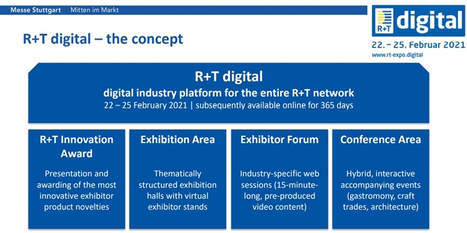 El próximo 6 de noviembre de 10:00 a 11:30 horas tendrá lugar desde Stuttgart, Alemania, la vídeo conferencia y presentación online del concepto digital de R+T 2021 y las importantes oportunidades que ofrece a las pequeñas y medianas empresa.