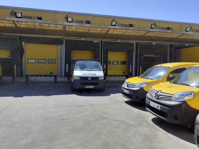 Furgoneta de Puertas Secades realizando trabajos para Correos