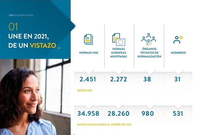 En 2021, UNE incorporó a su catálogo 2.451 normas, sumando en total cerca de 35.000 estándares, algunos de los cuales se han convertido en referencia a nivel global. Estas normas fueron elaboradas por los 234 Comités Técnicos que conforman UNE, espacios de diálogo y colaboración neutrales con más de 13.000 expertos de organizaciones españolas.