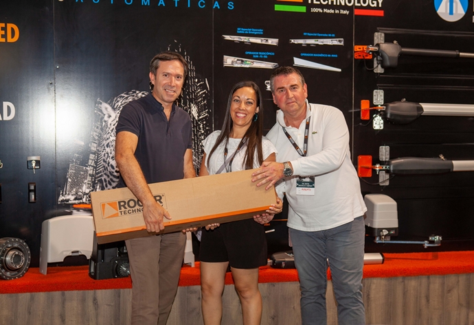 Una vez finalizada la exposición de Roberto Dal Bianco, los asistentes participaron en un sorteo en el que varios afortunados ganaron diversos productos de Roger Technology y Master Ingenieros. Entre ellos encontramos: un kit completo abatible de doble hoja, un kit completo abatible de una hoja, un kit de operador de puerta corredera, un Power Box Inverter full solar + baterías, un operador magnético y diversos programadores MI-Touch.