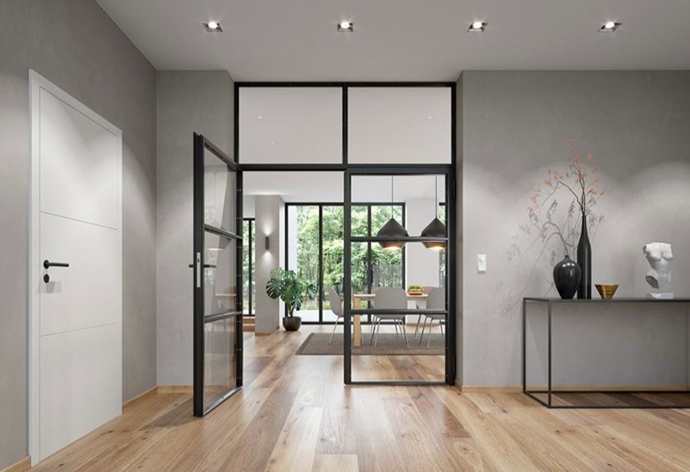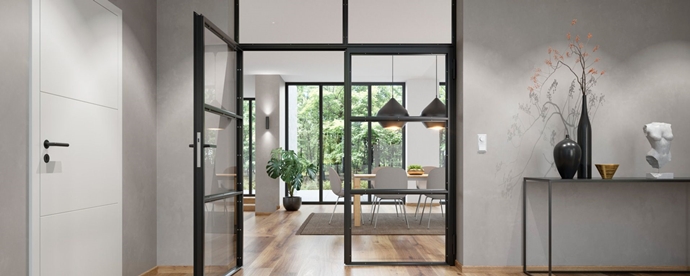 Este novedoso producto para uso residencial destaca por su toque de elegancia. El diseño minimalista de las puertas Loft de acero y cristal garantiza un aspecto moderno y se puede combinar con diferentes estilos de decoración. Uno de los detalles diferenciales es la posibilidad de diseño individual, lo que facilita poder cumplir los deseos personales de cada proyecto.