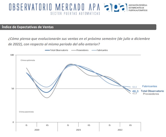 • Durante el primer semestre de 2022, las empresas del observatorio APA de puertas automáticas aumentaron el valor de sus ventas en un 9,4% de promedio respecto al mismo período del año anterior, en un contexto de subida de tarifas de un 8,4%.